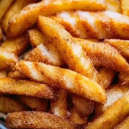 Cozy, cinnamon-kissed apple fries that are crispy on the outside and tender on the inside, perfect for a quick snack or dessert.