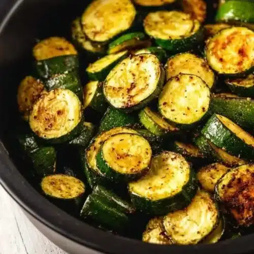 - Cook for 10–12 minutes, shaking the basket halfway through, until the zucchini is tender and slightly crispy on the edges.