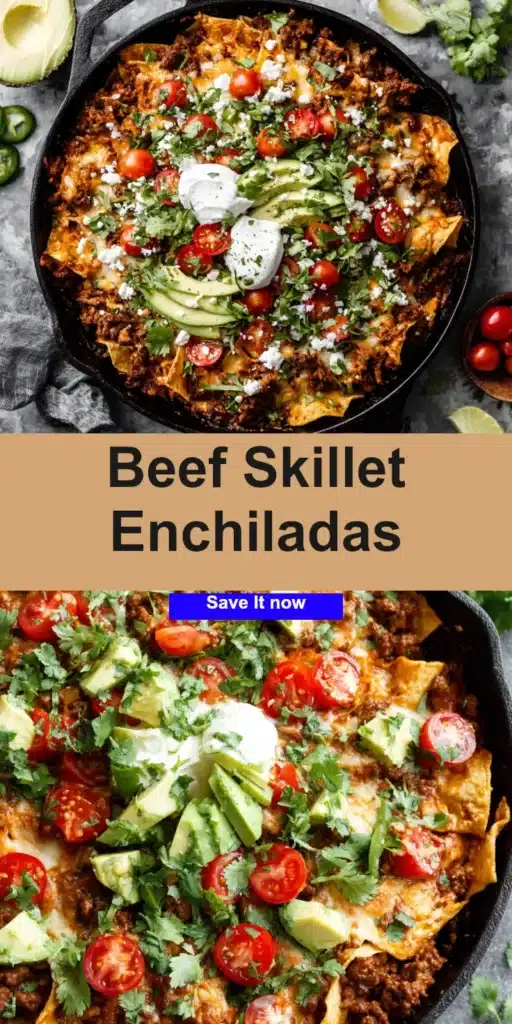 Beef skillet enchiladas are an excellent choice for a quick weeknight dinner that doesn’t compromise on flavor. Their savory filling and cheesy topping make them a big hit at the dinner table. For more delicious ideas, explore our recipes on Pinterest, where you can find a variety of meal inspirations.