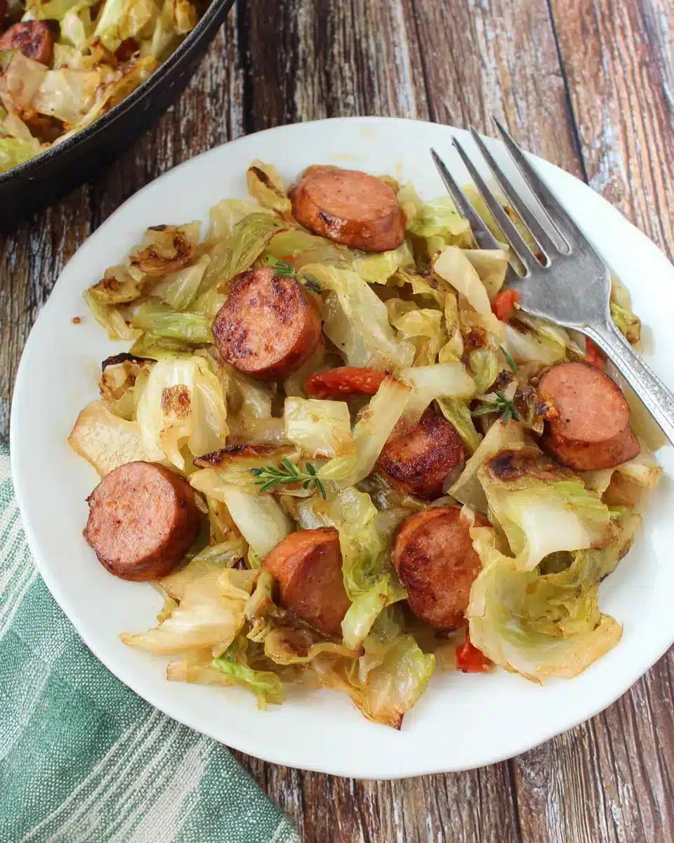 Consider pairing your cabbage and sausage skillet with some roasted potatoes or a side of green beans for a well-rounded meal. A light vinaigrette salad can also add brightness to the dinner table.