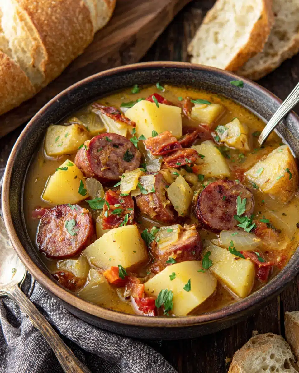 This Cajun Potato Soup is a comforting delight, featuring hearty potatoes and flavorful andouille sausage, making it a perfect dish for any occasion.