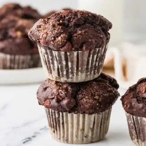 Warm, chocolatey muffins made with sourdough discard, perfect for breakfast or as a snack.