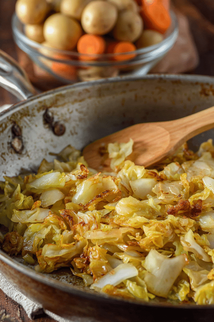 Sure, you can toss your cabbage in with the slow cooker, but hear me out: pan-frying gives it golden edges and layers of flavor. It’s not extra work it’s extra wow.