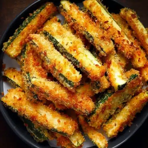 Pat zucchini dry with paper towels to reduce sogginess before breading. Don’t overcrowd the basket; cook in batches for even crisping. Store leftovers in an airtight container in the fridge for 3–4 days and re-crisp in the air fryer.