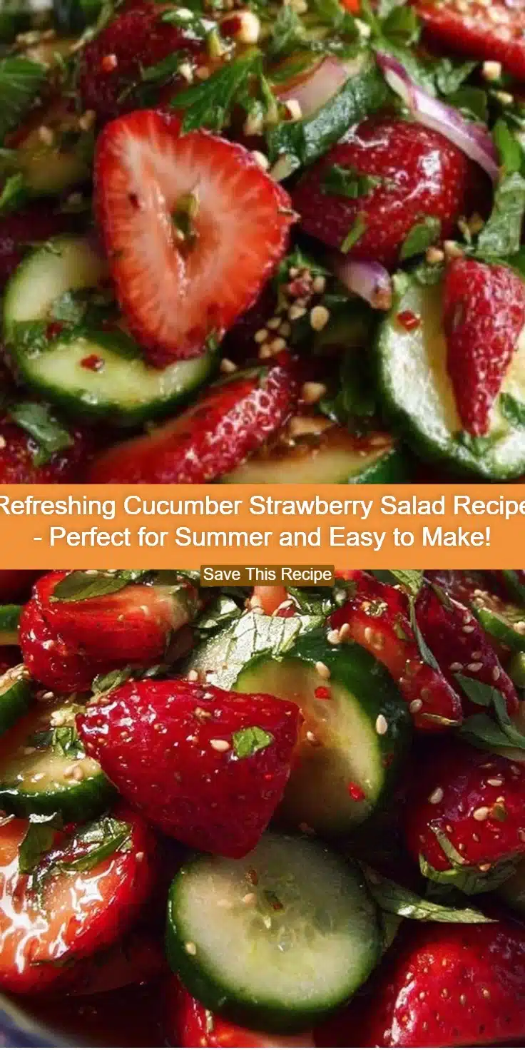 A fresh and crisp salad combining sweet strawberries and cool cucumbers, perfect for summer sides or potlucks.
