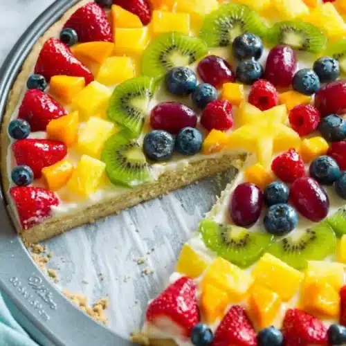 Bright, colorful, and surprisingly simple, this dessert brings a bakery feel to your kitchen with minimal fuss. Fruit Pizza is perfect for celebrations or an easy weeknight treat—sweet cookie crust, creamy topping, and a rainbow of fresh fruit. For a savory pizza idea to contrast, try this BBQ chicken pizza for dinner tonight.