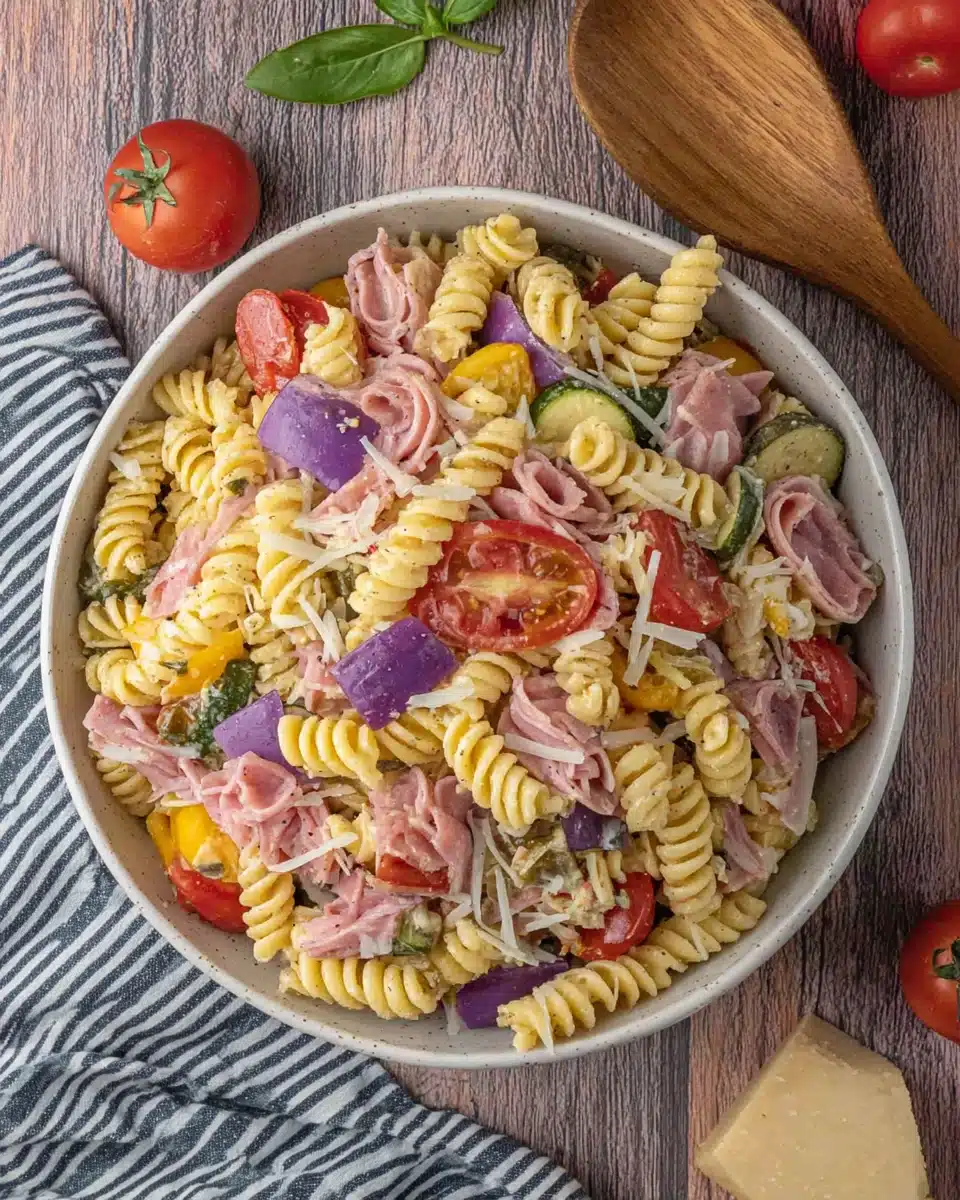 Grinder Pasta Salad is a vibrant and hearty salad made with rotini pasta, deli meats, cheese, and a tangy dressing. Often enjoyed during summer gatherings, this dish is named for its combination of flavors reminiscent of a classic Italian grinder sandwich. It’s a delightful way to pack deliciousness into every bite.