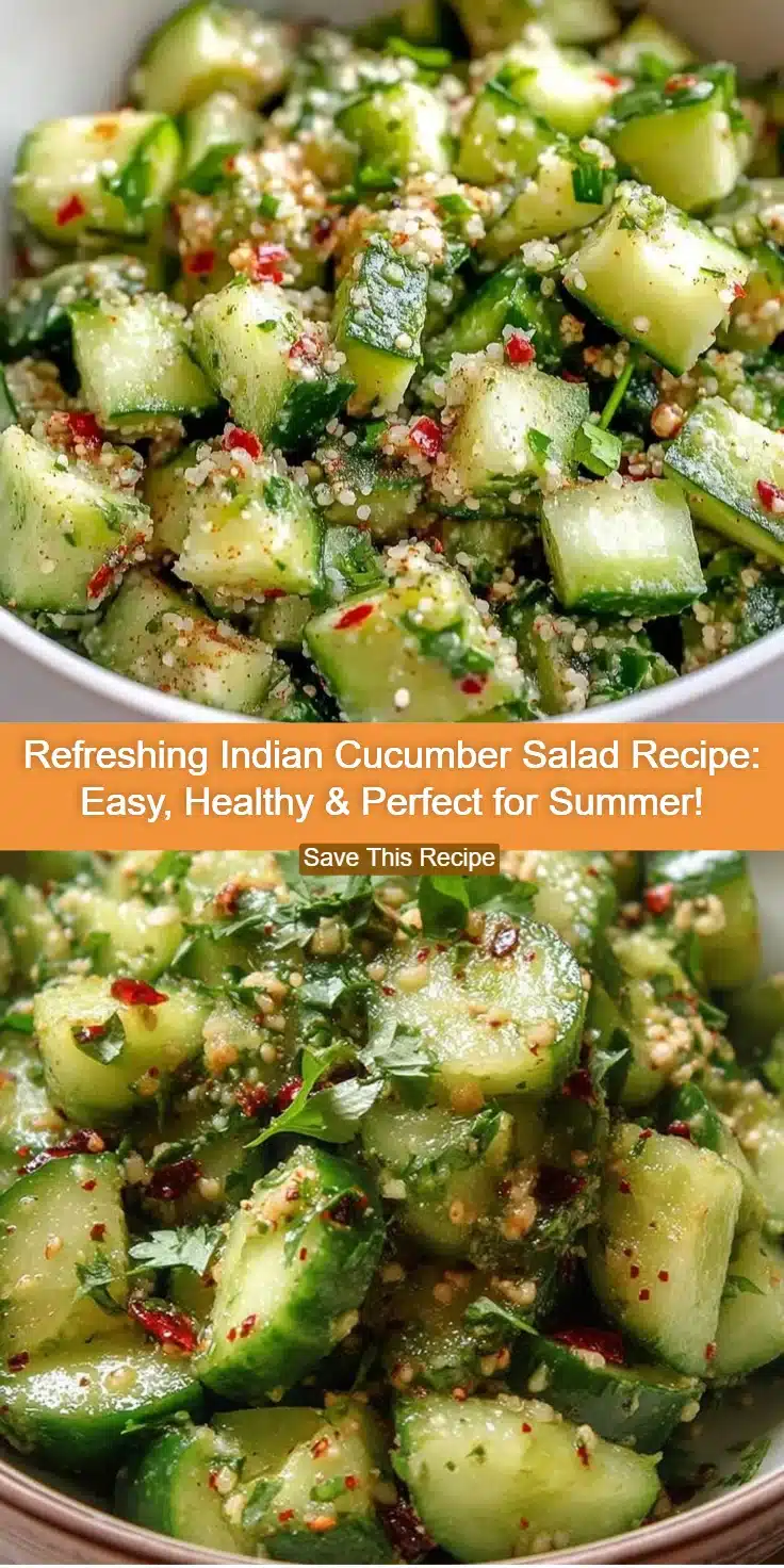 Fresh, bright, and crunchy, this Indian Cucumber Salad is the perfect light side to complement any meal. Ready in minutes, it offers a naturally refreshing addition to lunch or dinner.