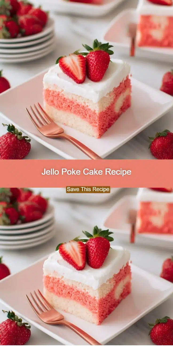 Bright, easy, and wildly nostalgic, this Jello Poke Cake Recipe turns a boxed white cake into a colorful, moist dessert the whole family will request. It comes together fast and stores well for party prep — if you love fruity treats, try this spin on a classic classic strawberry poke cake.