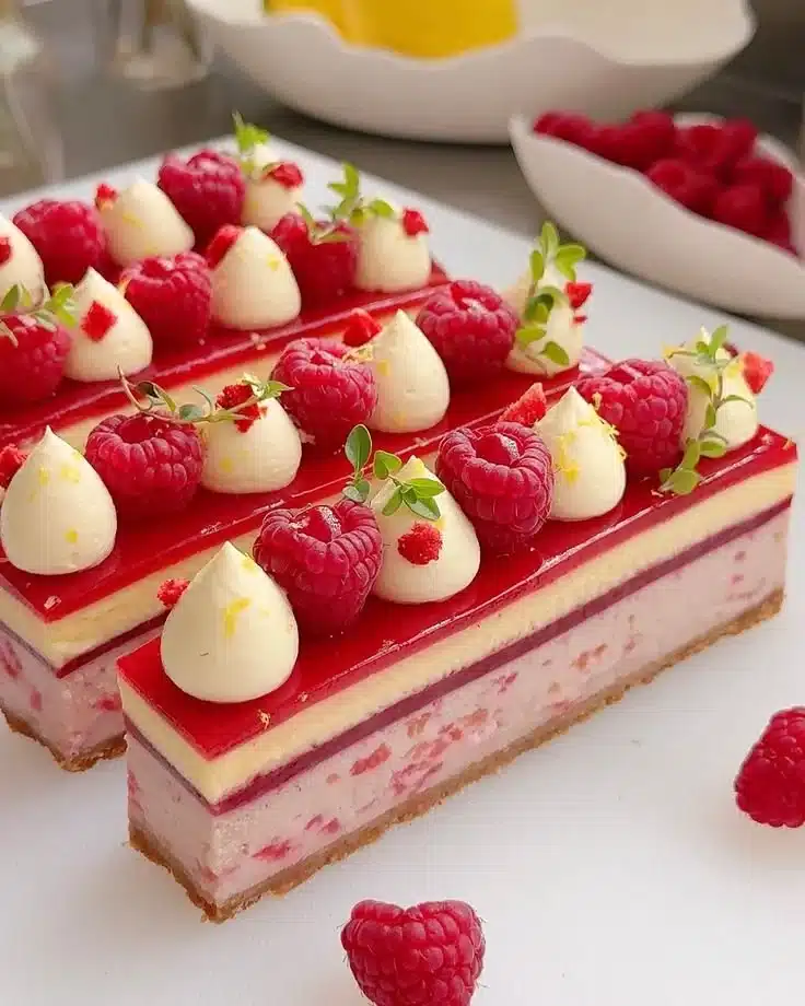 A warm, bright, and tangy dessert featuring a silky lemon-scented filling and juicy raspberries, perfect for spring gatherings and easy to prep ahead.