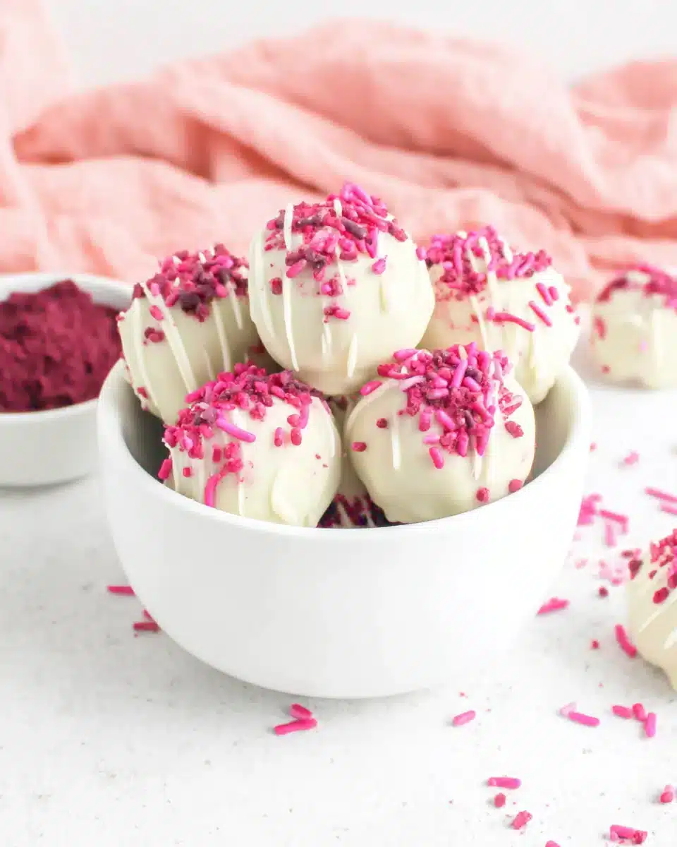 Red velvet truffles are a delightful way to celebrate love this Valentine’s Day. With their rich, velvety texture and creamy coating, they make for a truly irresistible treat. These little bites of joy are not only easy to prepare but also perfect for sharing with that special someone or enjoying during a cozy evening at home. Each truffle, coated in luscious white chocolate and, optionally, sprinkled with festive colors, will surely impress anyone you share them with.