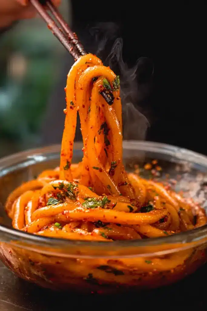 Chewy, garlicky, and fiery — these Spicy Potato Noodles are tossed in a sizzling homemade chili oil that clings to every strand. Comforting, cozy, and full of flavor, they’re perfect for when you crave something bold and addictive.
