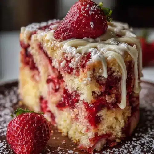 Bright, creamy, and wildly easy, this Strawberry Earthquake Cake is a showstopping dessert that comes together with minimal fuss. It’s perfect for potlucks or a cozy family night—tender cake, sweet cream cheese ribbons, and fresh berries on top. For another crowd-pleasing berry treat try these strawberry shortcake bars as a companion.