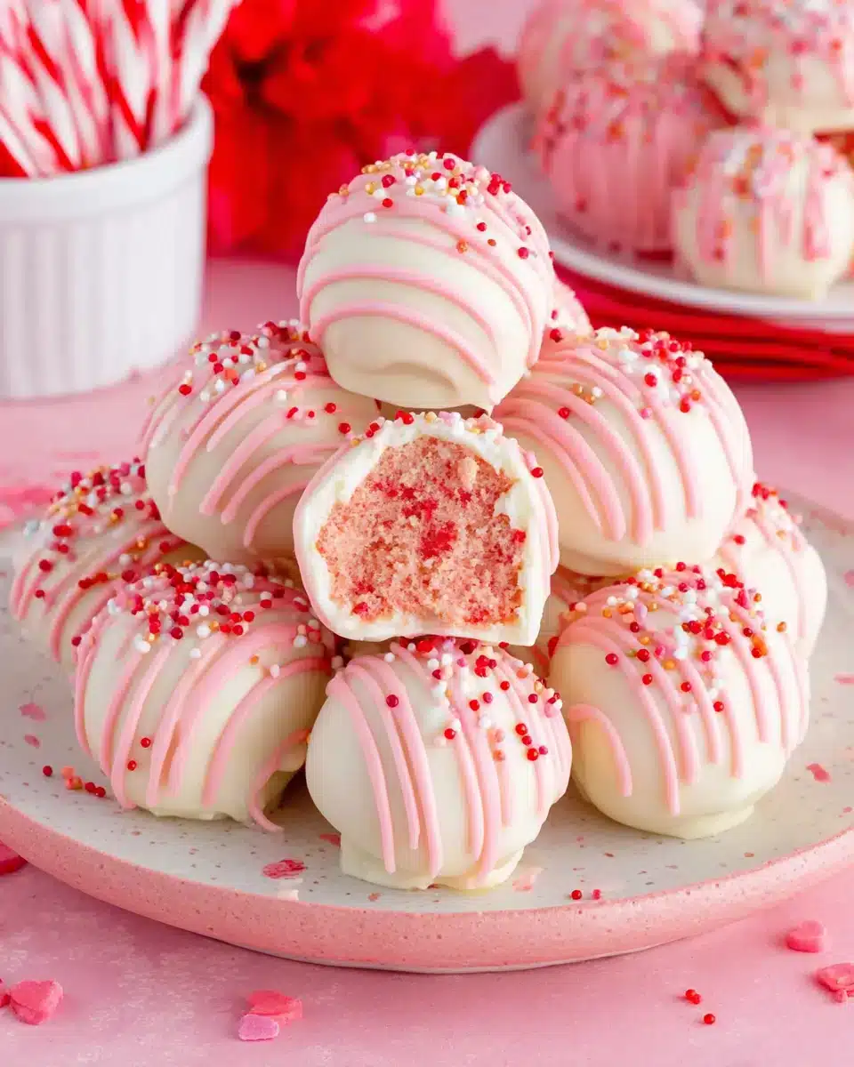 Enjoy these delightful Strawberry No Bake Cake Balls as a sweet surprise for your loved ones this Valentine’s Day. For more inspiration, check out other delicious treats like those on Pinterest. With their vibrant color and luscious flavor, these cake balls are sure to become a favorite for any occasion!