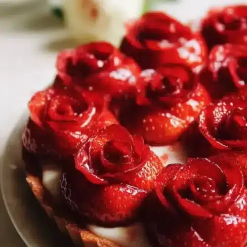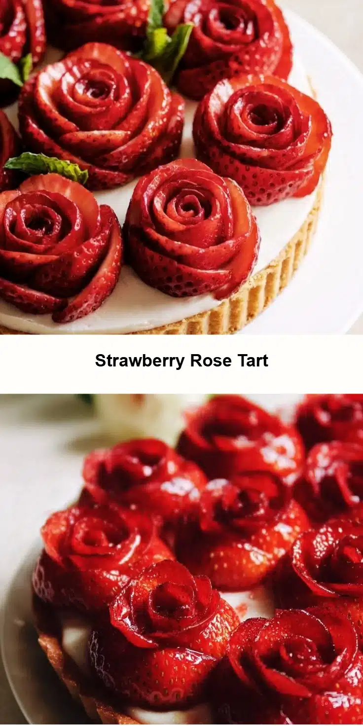 Use ripe but firm strawberries so slices hold the rose shape. Chill the tart well; cold filling firms up for cleaner slices. Gently pat strawberries dry to avoid watering down the filling. If mascarpone feels too thick, fold in a tablespoon of cream to loosen it slightly. Keep leftovers covered in the fridge and eat within 48 hours for best texture.