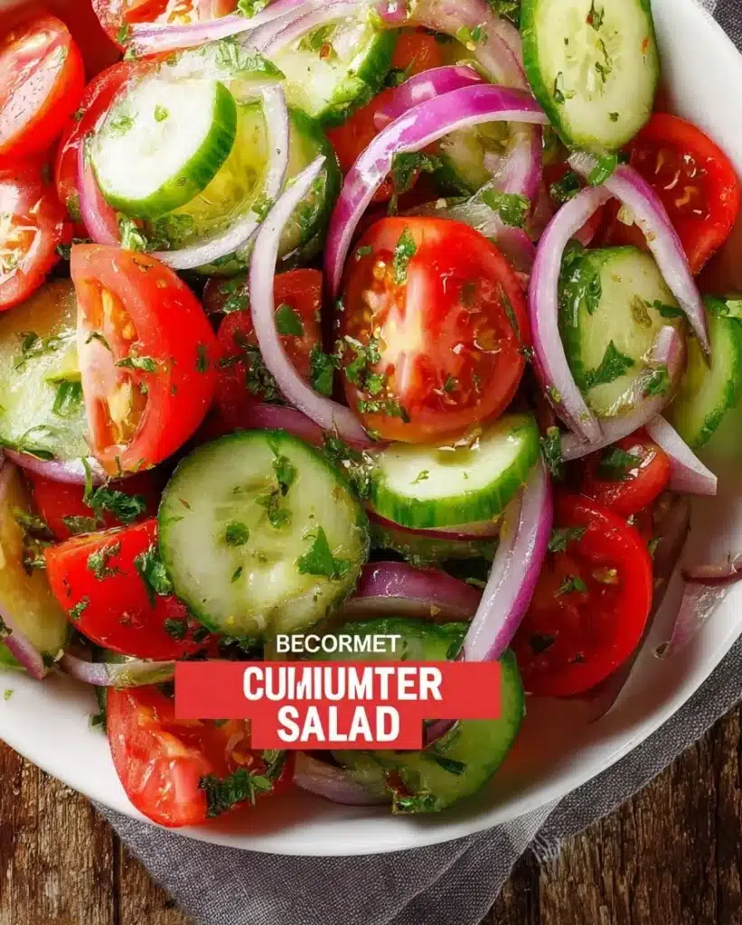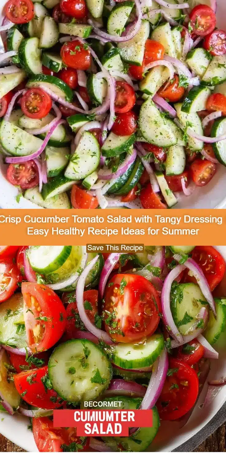 This ultra-refreshing salad features crisp cucumbers, juicy tomatoes, and red onion, all tossed in a tangy dressing, making it a perfect side for warm evenings and quick lunches.
