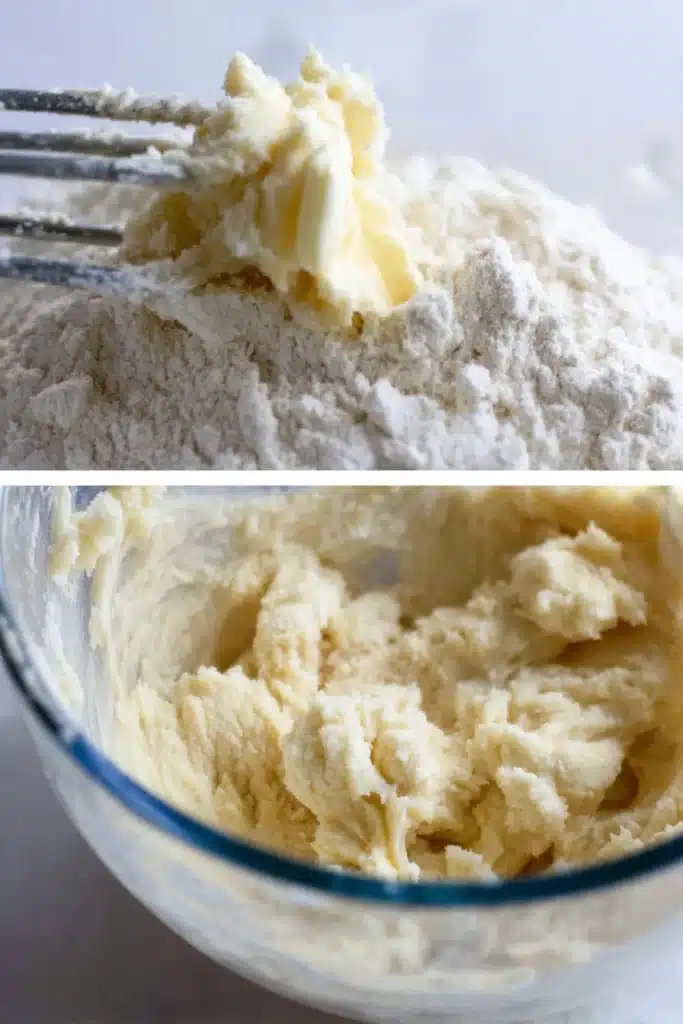 - Add softened butter and powdered sugar to a large bowl. Beat on medium-high speed for 4 to 5 minutes until the mixture is light, fluffy, and pale in color. This step makes the cookies extra airy.